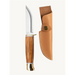 Jotunheimen-kniven med skede er en ulv i fåreklæder. Bag det næsten feminine design gemmer sig en robust kniv med en skede lavet af førsteklasses stål. Håndtaget af oliventræ med messingdetaljer er tilpasset dem med lidt mindre hænder. Fingerstoppen sikrer et godt og sikkert greb. Kniven leveres i et hårdt etui lavet af skinnende læder