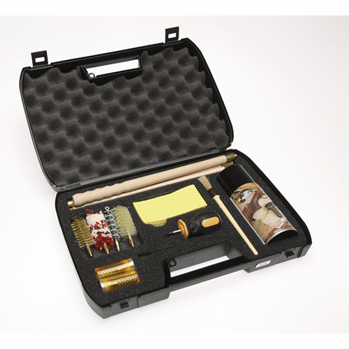 Luksus rensesæt til haglgevær, specielt sammensat til grundig og skånsom rengøring af våben i kaliber 12 og 20. Sættet indeholder en kraftig renses...
