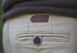 Norbergs chinos er fremstillet af 97% bomuld og 3% elastan, hvilket gør dem yderst behagelige at have på, da de strækker sig og følger kroppens bevægelser. De har hornknapper, to skrå forlommer, en mindre møntlomme på højre side og to baglommer med knapper.