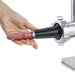 Takket være de ca. 4,2 cm stor indføringsskakt, selv større stykker kan nemt skubbes ind i snekkehuset (evt. ved hjælp af den medfølgende skubber). Det todelte skæretilbehør består af en kniv og en hakkeplade. Derfor bliver der ingen opvarmning under hakningsprocessen, og maden forbliver kølig og har længere holdbarhed.