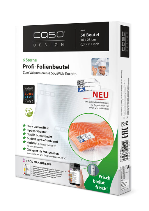 Caso folieposer er velegnet til vakuumopbevaring af fødevarer, som dermed øger holdbarheden betragteligt samt beskytter mod frostskader ved nedfrys...