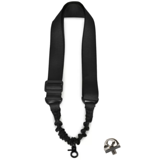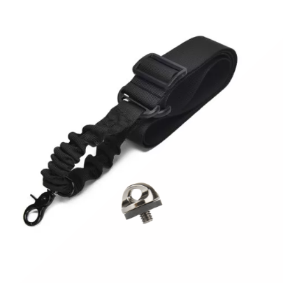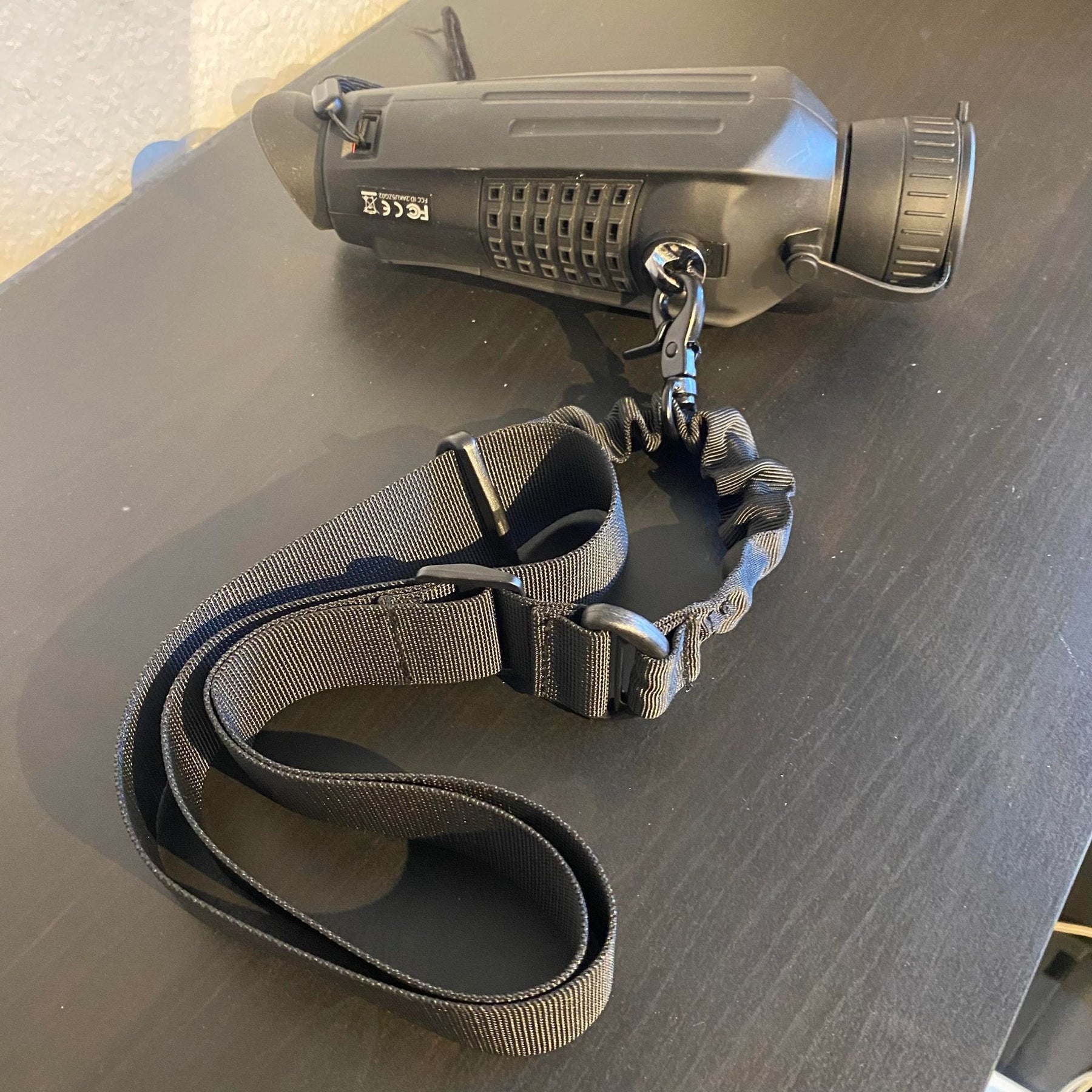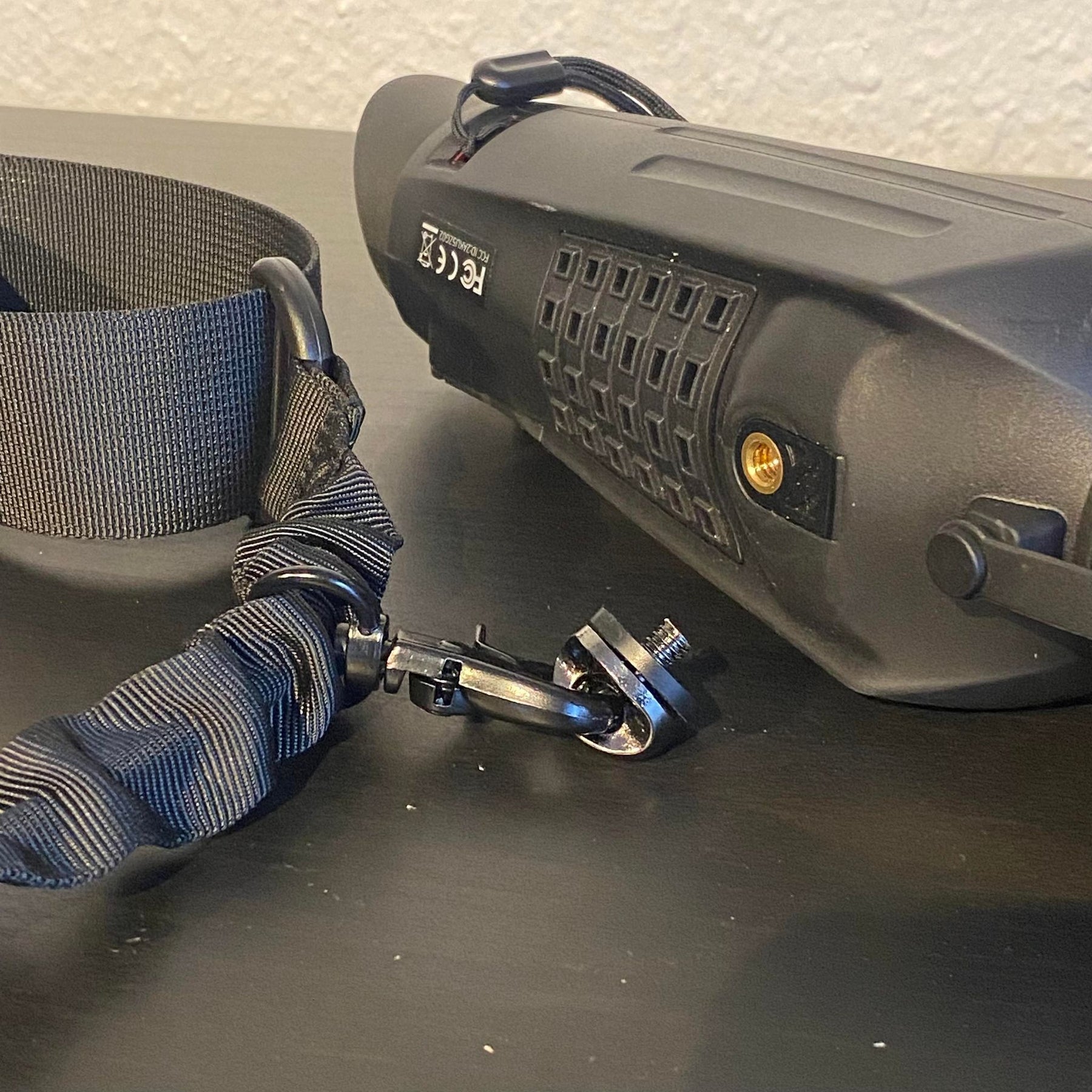 N'en faites pas un problème pour vous-même. Cette sangle peut être ajustée pour que votre guetteur soit assis sur la poitrine, ce qui est plus confortable, surtout si vous chassez et que vous vous retrouvez dans des situations où vous devez aller vite. La vis est de 1/4 qui s'adapte à 99% de tous les spotters. La sangle a un élastique au bas qui amortit le saut du pareur pendant la marche.