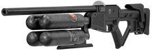 Denne avancerede PCP-luftbøsse tilbyder både fuldautomatisk og semiautomatisk skydning, hvilket gør den ideel til både præcisionsskydning og hurtige sekvenser. Udstyret med fire 580cc kulfiberflasker, leverer den op til 480 skud pr. opladning ved 250 BAR. Med en mundingshastighed på 1050 fps og en energioutput på 49 joule i .22 kaliber, sikrer den kraftfuld og nøjagtig ydeevne. Det taktiske syntetiske skæfte med justerbar kindpude og gummibagkappe giver optimal komfort og kontrol. Integrerede Picatinny-skinner muliggør montering af tilbehør som kikkerter og bipods. Den indbyggede manometer og det patenterede anti-knocksystem sikrer sikker og pålidelig brug.
