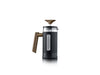 Takket være det elegante håndtag af ægte træ af akacietræ, ligger den franske pressekande behageligt i hånden.