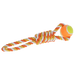 Sjovt og holdbart hundelegetøj, der kombinerer en bold og et stærkt bomuldsreb. Med en længde på 37 cm er det ideelt til træk-, kaste- og apporteringslege. Det farverige design i orange og gul gør det nemt at finde både ude og inde. Perfekt til at holde din hund aktiv og stimuleret.