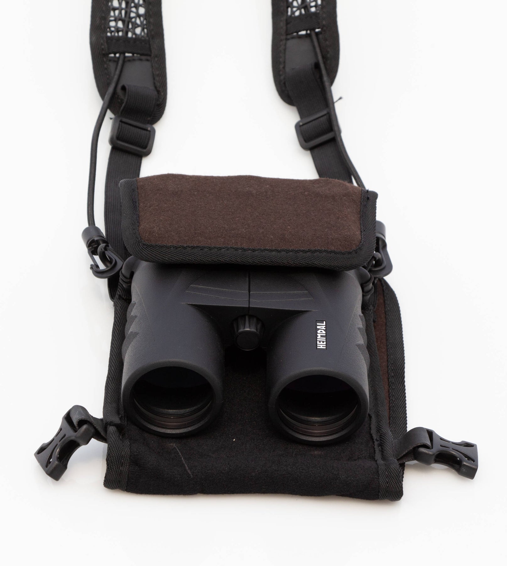 Hold din håndkikkert tør og dugfri med dette super geniale kikkertbæresystem. Med plads til selv de store kikkerter. Udført i loden på ydersiden og fleece på indersiden som gør betjeningen yderst lydløs. Faldfront med dobbelt magnetlukke. Ventileret bærerem med super justeringsmuligheder. Tre forskellige kikkertophæng. Sidestropper som holder din kikkert på plads selv under vanskelig pürsch. Lomme på bagsiden til, for eksempel mobiltelefon
