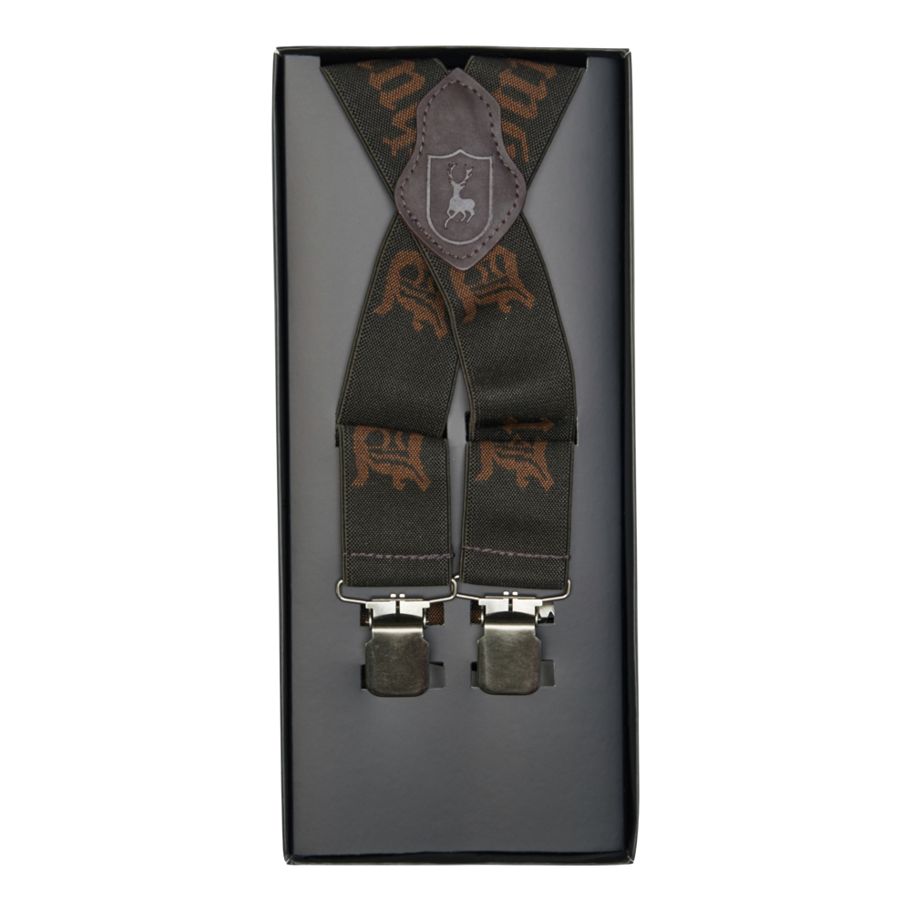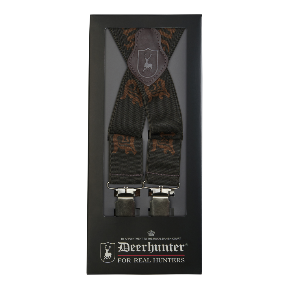 Deerhunter seler - grønne med logo Justerbare, elastiske seler med spænder i metal. Ved fysisk aktivitet er det en fordel, at skjorten bliver siddende i bukserne.