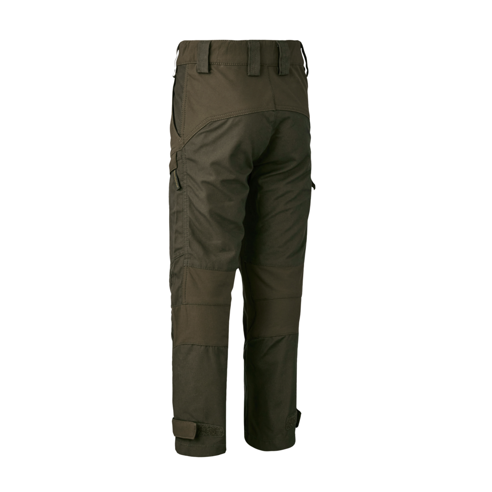 Deerhunter Youth Strike bukserne er tænkt som et slidstærkt valg til familiens unge eventyrere. Youth Strike Bukserne er specialdesignet til udendørsaktiviteter og fås i en stilfuld, dybgrøn farve med 4-vejs stræk. Bukserne er designet til fysisk aktive børn og har bl.a. elastisk linning, formsyede knæ, justerbar ankelrem med velcro og et udvalg af perfekt placerede lommer med lynlåslukninger, der yder god beskyttelse til bærerens dyrebare skatte. Strike bukserne er skabt til at kunne holde til lidt af hvert med Teflon Shield og Oeko-Tex.